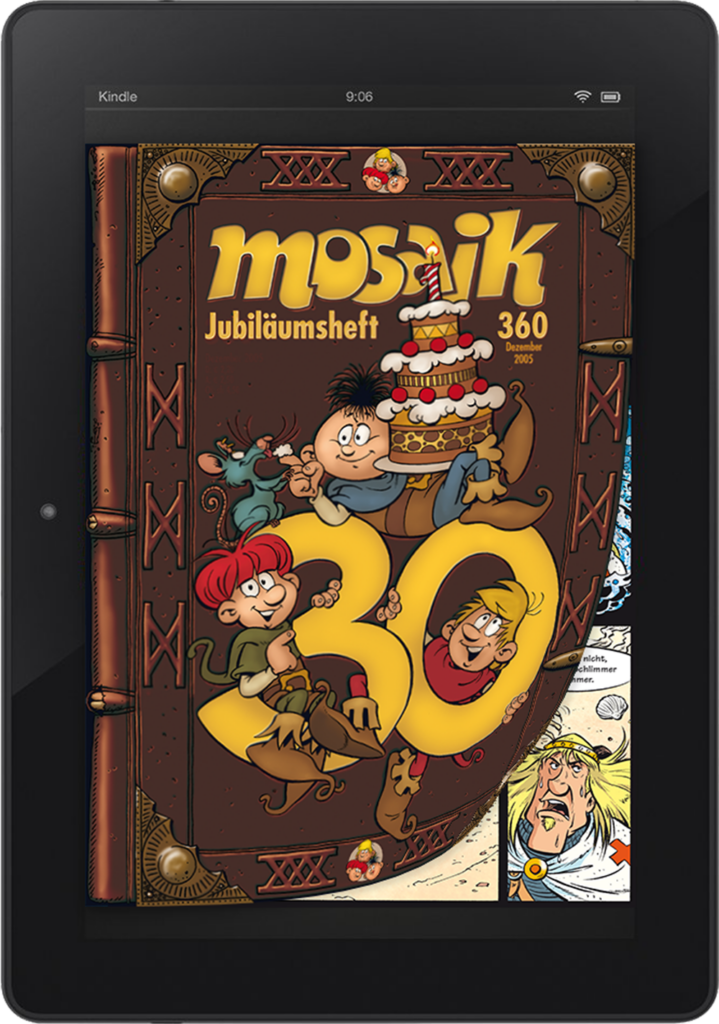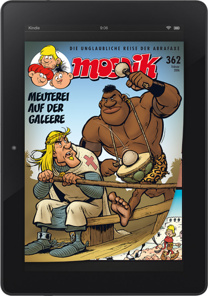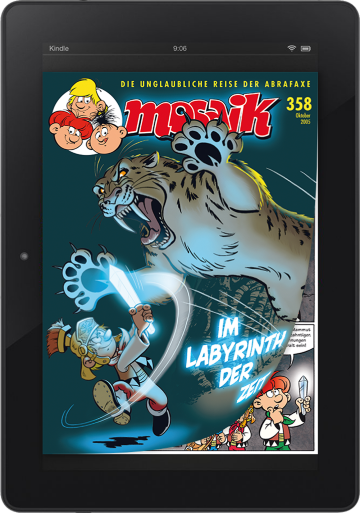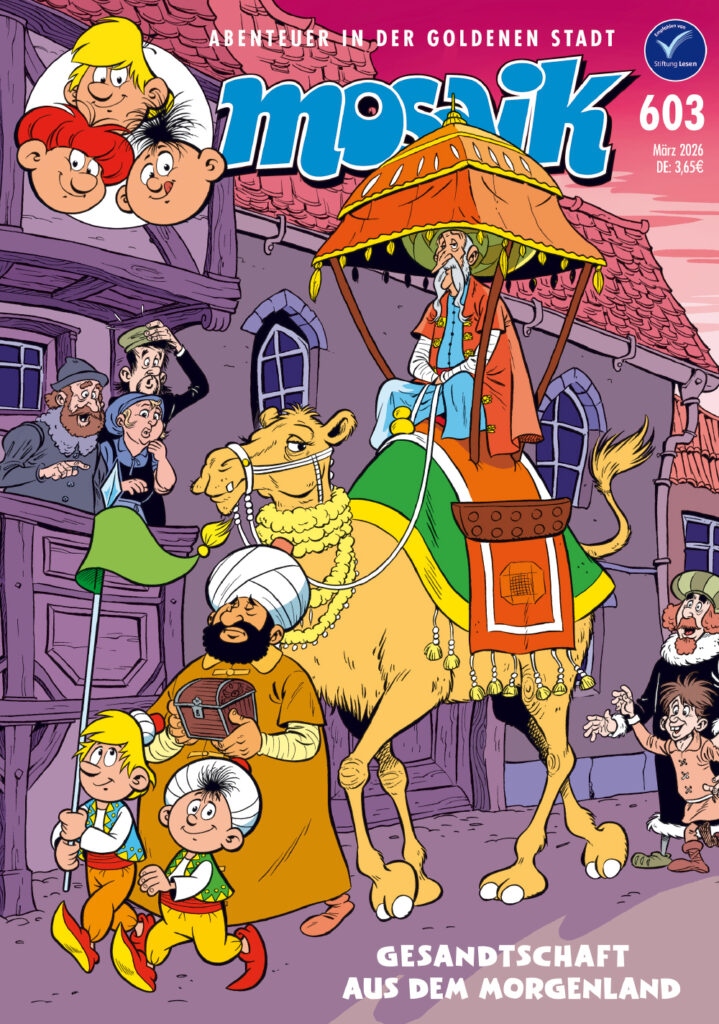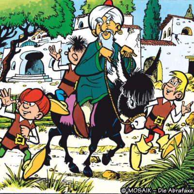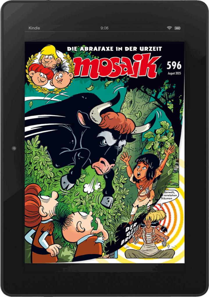 Monatlich gibt es am Kiosk und im Abo ein neues MOSAIK-Heft mit den unglaublichen Abenteuern von Abrax, Brabax und Califax. Außerdem erscheint viermal im Jahr ein MOSAIK mit Anna, Bella und Caramella.