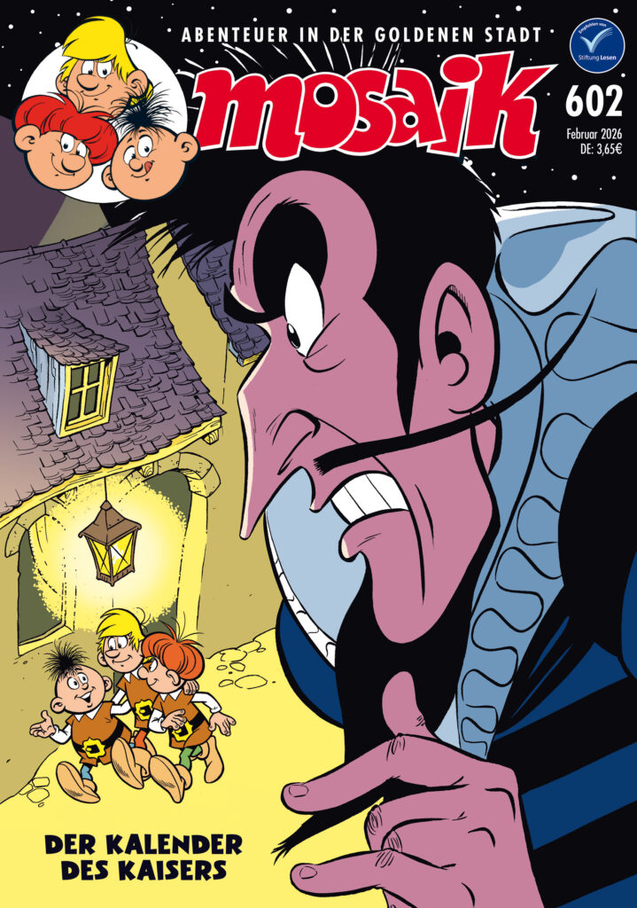 Monatlich gibt es am Kiosk und im Abo ein neues MOSAIK-Heft mit den unglaublichen Abenteuern von Abrax, Brabax und Califax. Außerdem erscheint viermal im Jahr ein MOSAIK mit Anna, Bella und Caramella.