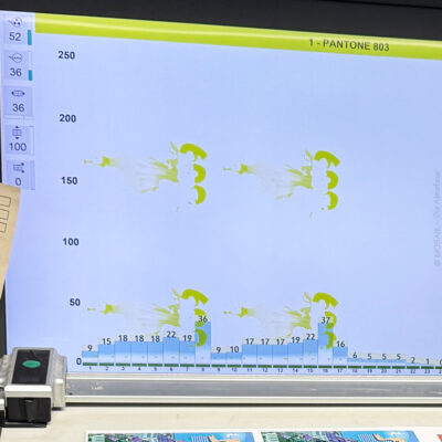 In der Regel druckt man mit vier verschiedenen Farbrollen (Cyan, Magenta, Gelb und Schwarz). Für das Cover des MOSAIK 600 seht ihr hier allerdings noch eine fünfte Farbrolle mit einer ganz besonderen Farbe ...